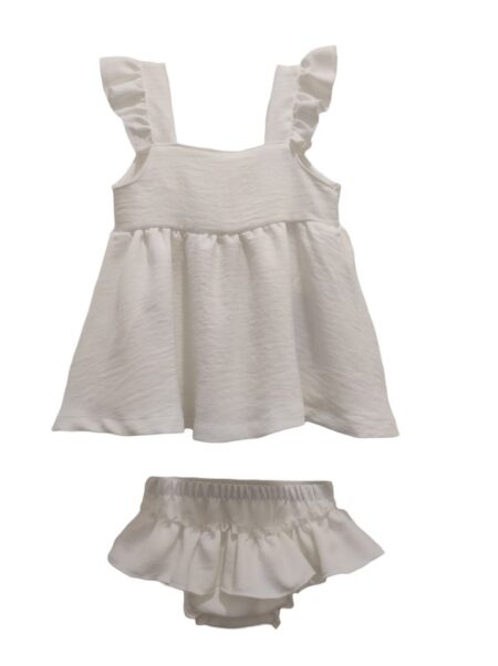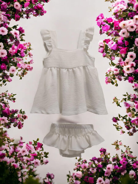 Παιδικό φόρεμα λευκο με βολάν και βρακάκι με βολάν