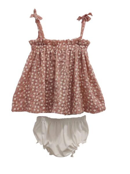 Βρεφικό σετ Ge.ni.us . Φόρεμα κεντημένο με λάστιχο σαίτα περιμετρικά και βρακάκι.