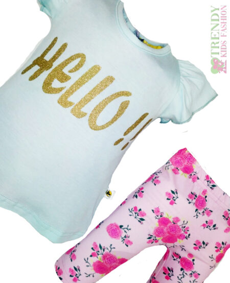 Σετ μπλουζάκι γαλάζιο με κολάν ροζ φλοράλ