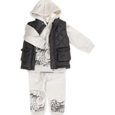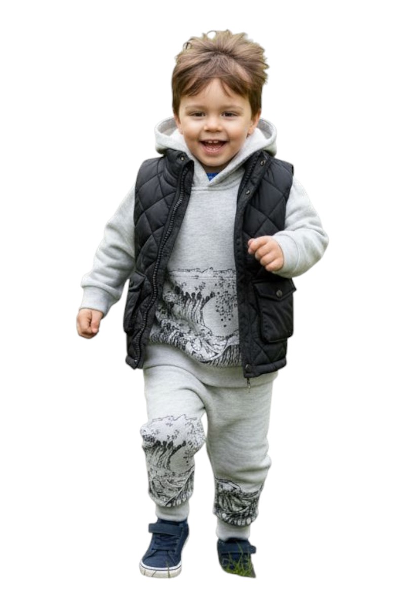 Σετ 3 Τεμαχίων με χνουδιασμένη φόρμα και αμάνικο μπουφάν 3809