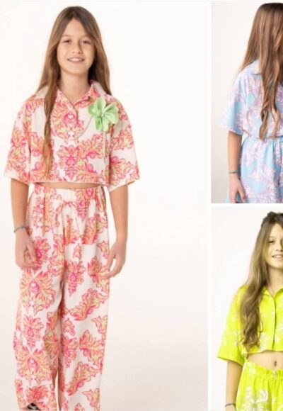 Σετ σε 3 χρεώματα κροπ-πουκάμισο με παντελόνι