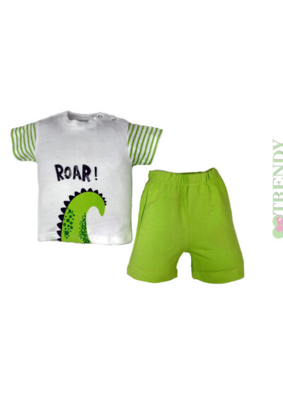 Σετ βερμούδα μπλούζα λαχανί-λευκό / 32-8803