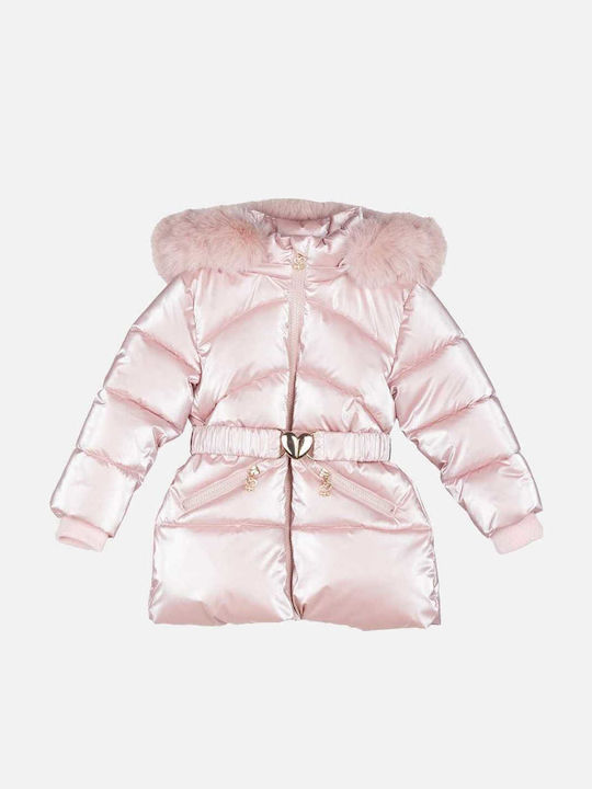 Μπουφάν ροζ μεταλιζέ με γούνινη επένδυση
