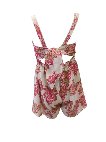 Ολόσωμο σορτς φλοραλ φουξ. Ανοιχτή πλάτη με δέσιμο και λάστιχο στην μέση