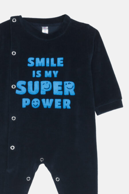 Ολόσωμο βελουτέ φορμακι SUPER POWER μπλε χρώμα