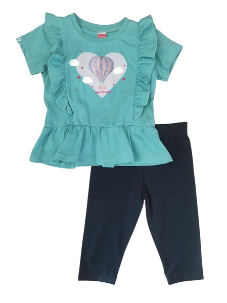 Παιδικό Σετ με Κολάν Καλοκαιρινό για Κορίτσι 2τμχ Τιρκουάζ