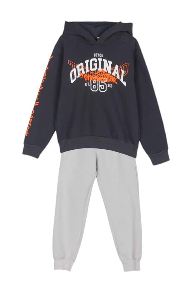 Σετ φόρμα φούτερ με κουκούλα για αγόρια Joyce αντράκι-γκρι .ΣΥΝΘΕΣΗ 80% ΒΑΜ. 20% ΠΟΛ.