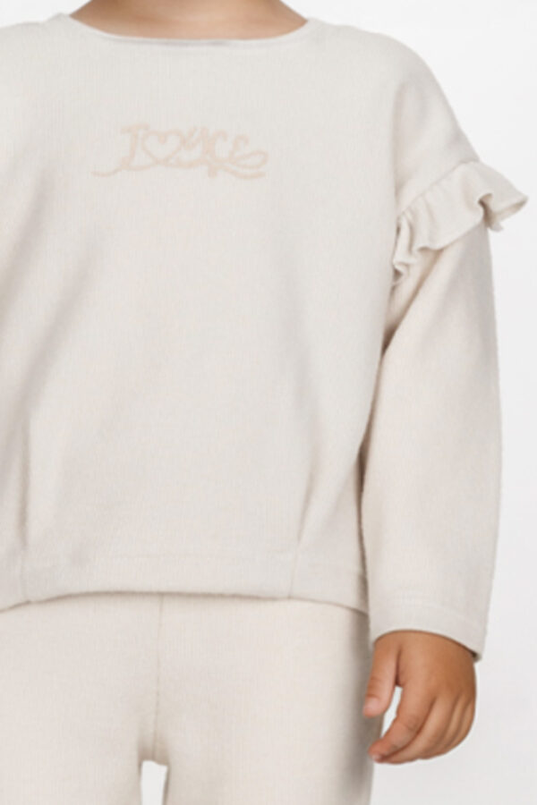 - Μπλούζα με στάμπα joyce μπροστά και βολάν στους ώμους σε χρώμα εκρού.