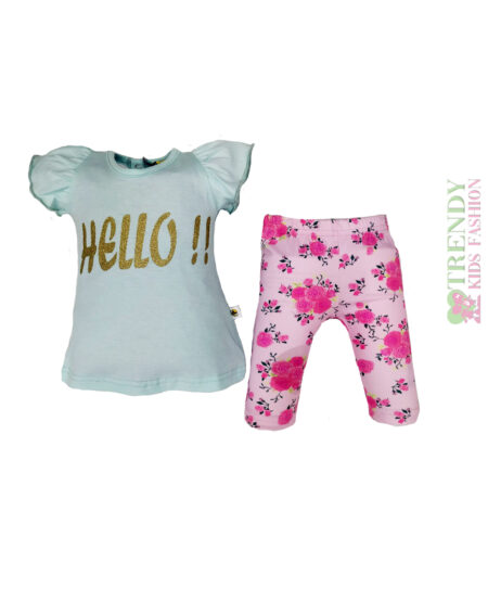 Σετ μπλουζάκι γαλάζιο με κολάν ροζ φλοράλ