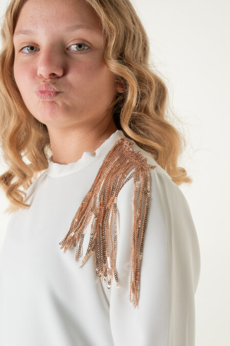 Σετ πουκαμίσα με κρόσσια παγιετα στους ωμούς και φούστα με παγιετες