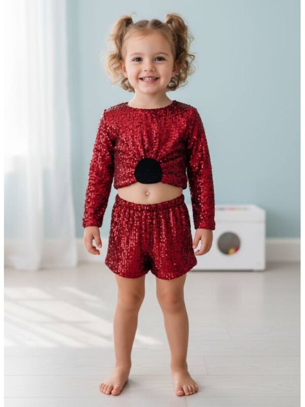 Σετ τοπ με σορτς και λουλούδι καρφίτσα από μπορντό παγετα