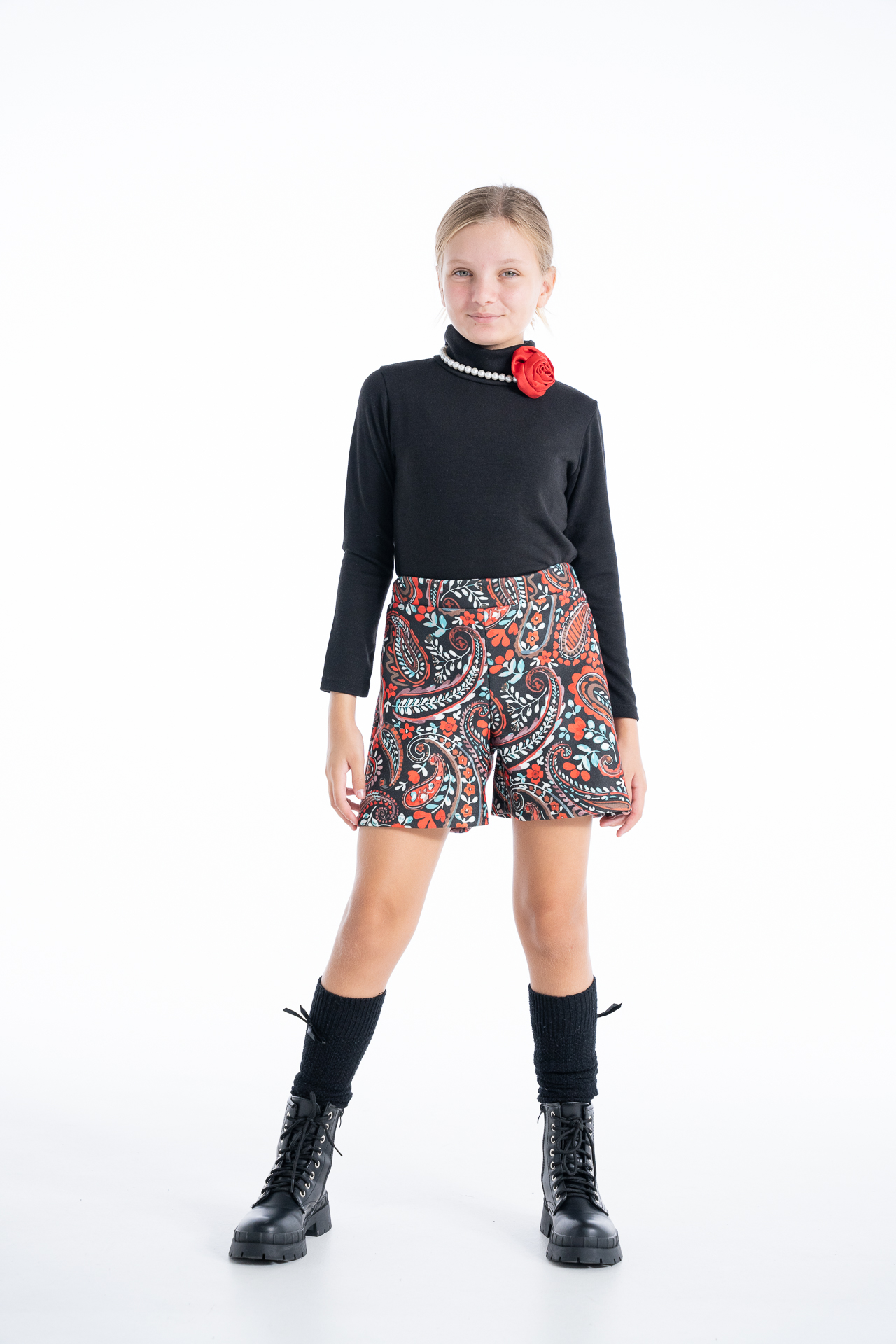 Σορτς εμπριμέ κόκκινο χρώμα. Μπορεί να συνδυαστεί με της μπλούζες με κωδικούς GNS346 μαύρο GNS404 εκρού GNS337 μαύρο GNS619Ε εκρού με πέρλες GNS619Κ κόκκινο με πέρλες