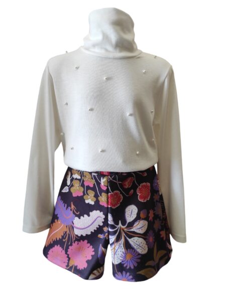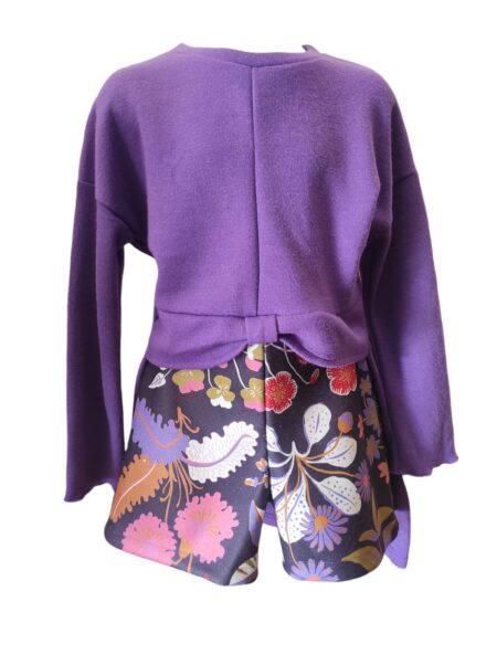 Σορτς εμπριμέ μωβ χρώμα. Μπορεί να συνδυαστεί με της μπλούζες με κωδικούς GNS413 μωβ GNS346 μαύρο GNS404 εκρού GNS337 μαύρο GNS619Ε εκρού με πέρλες