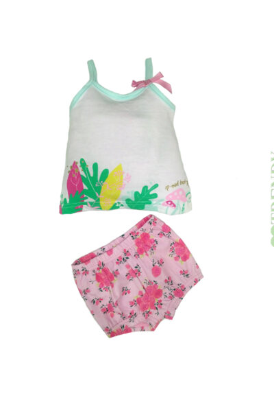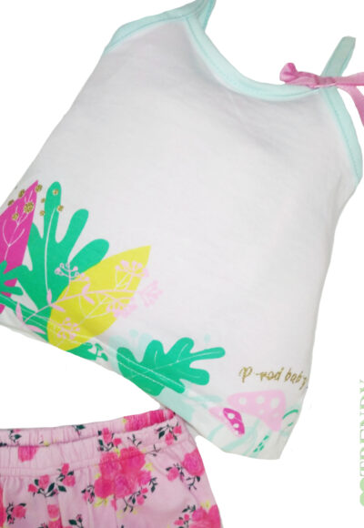 Σετ μπλουζάκι γαλάζιο με κολάν ροζ φλοράλ
