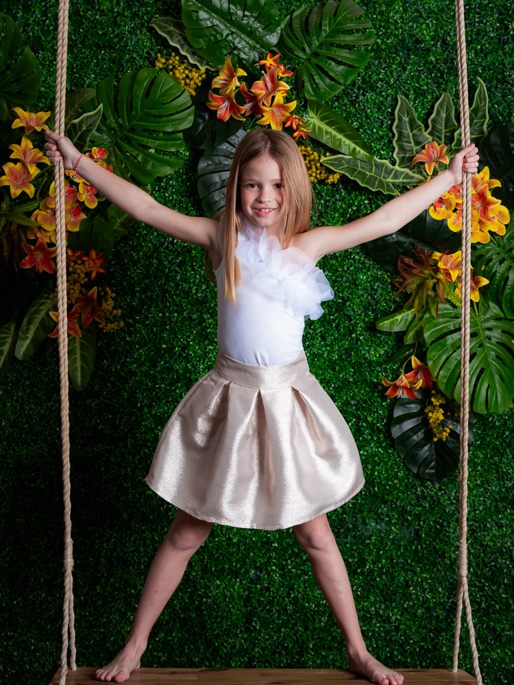 Φούστα κοριτσιών lurex μπεζ shiny με πιέτες