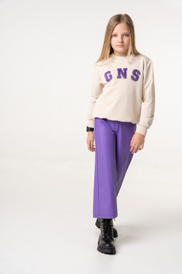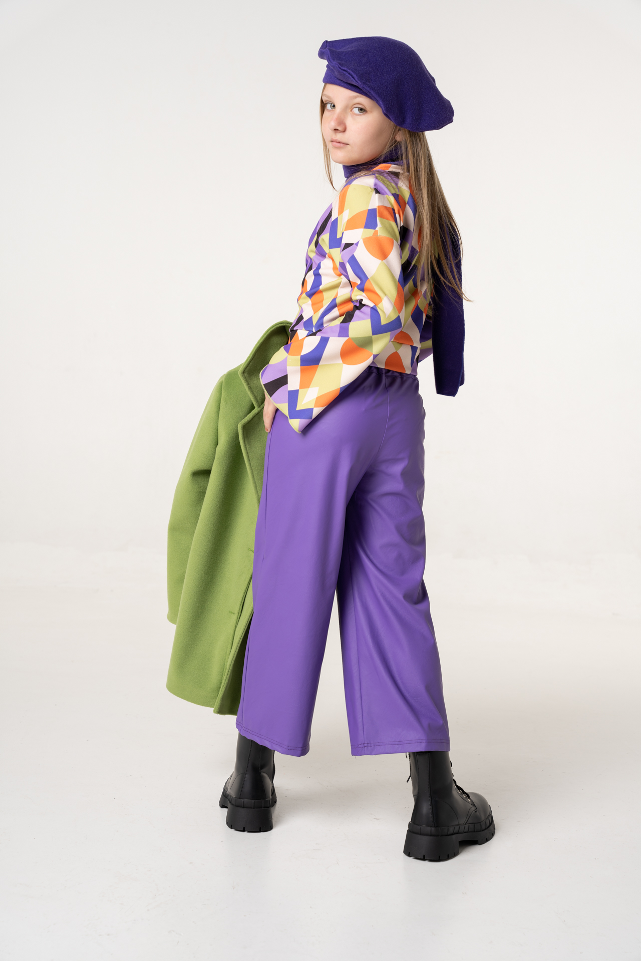 Παντελόνι δερματίνη μωβ και μαύρο χρώμα