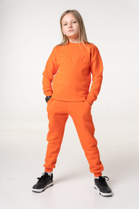 Σετ φόρμα φούτερ με κουκούλα σε πορτοκαλί χρώμα