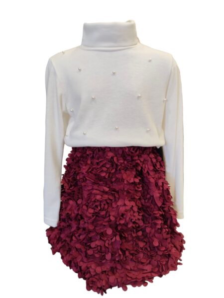 Σετ φούστα με 3D λουλούδια και πλεκτο ζιβάγκο με πάρλες