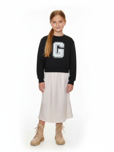 Σετ φούτερ με κέντημα απλικέ και φούστα σατινέ μακρυ. Πωλούνται και ξεχώρισα!!!!!!