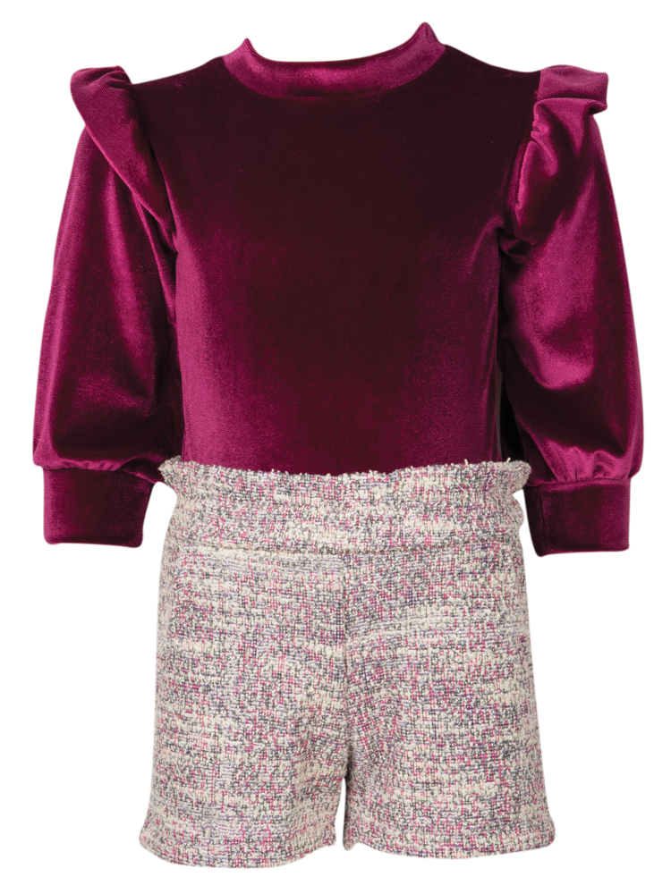 Σετ με σορτσάκι μπούκλε και βελουτέ μπλούζα