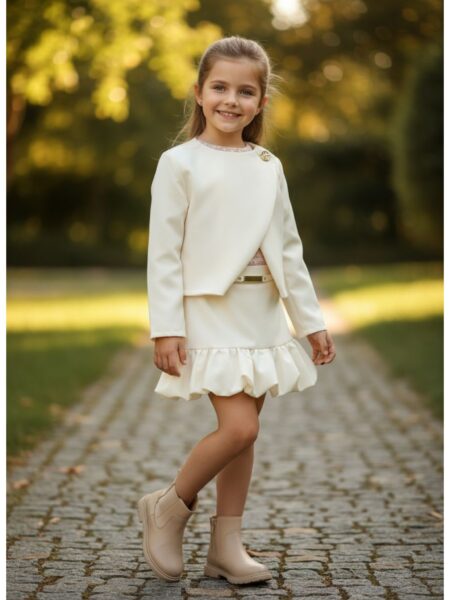 Σετ σακάκι με φούστα με μπάλου βολάν και ζώνη