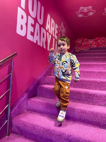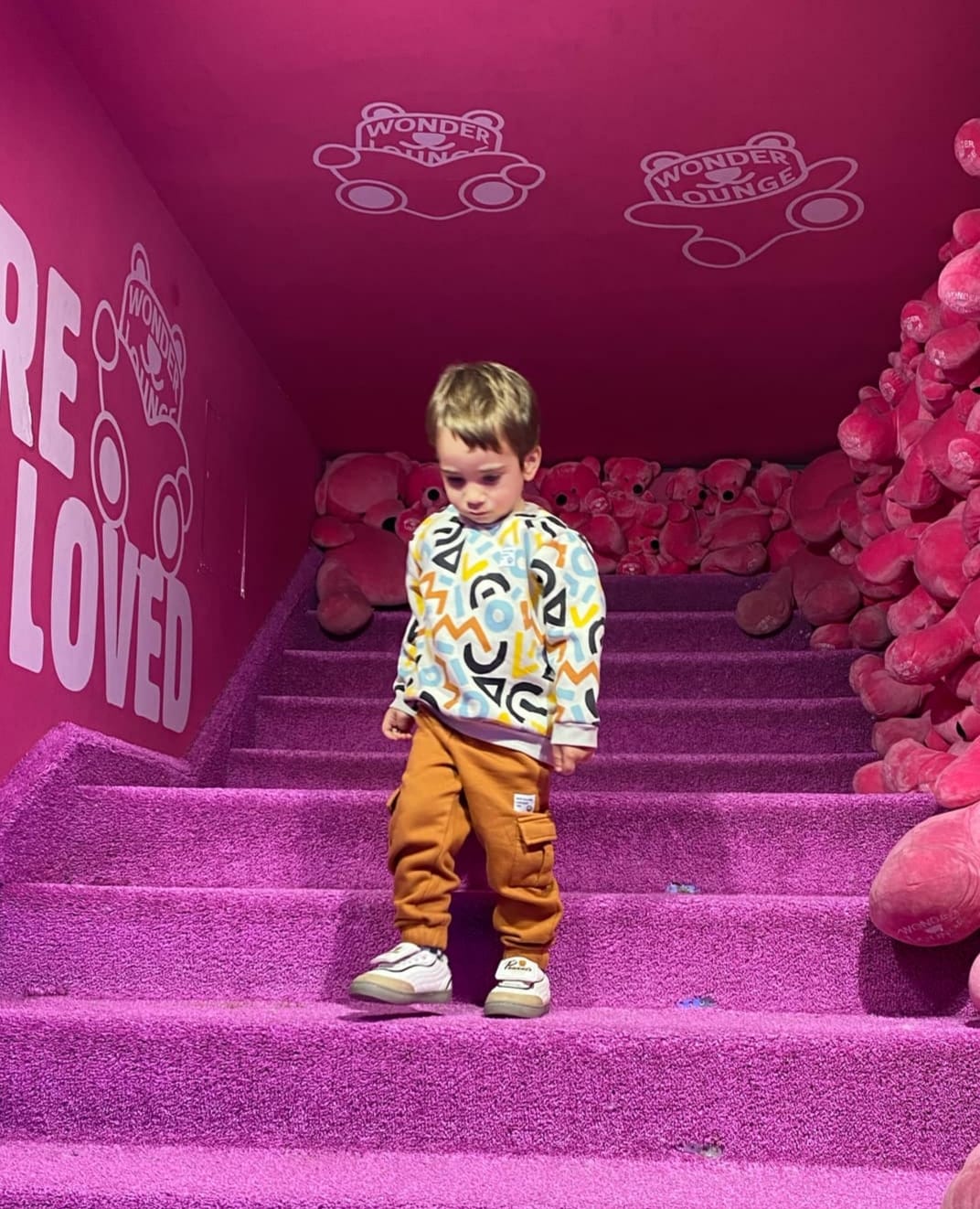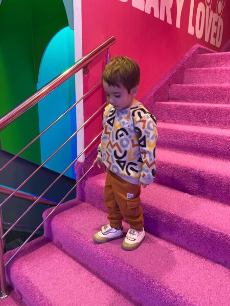 Φόρμα φούτερ για αγόρια New College μπεζ- χακί με τσέπες στο παντελόνι