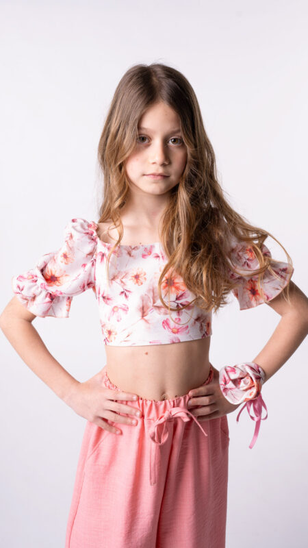 Μπλούζα-κροπ με άνοιγμα στην πλάτη . Μανίκια με λάστιχο στον ποδόγυρο.