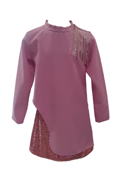 Σετ πουκαμίσα με κρόσσια παγιετα στους ωμούς και φούστα με ροζ παγιετες