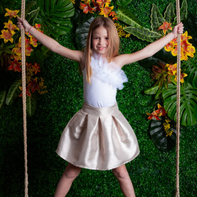 Φούστα κοριτσιών lurex μπεζ shiny με πιέτες