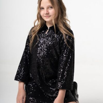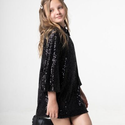 Φόρεμα με παγέτα και βελούδινο γιακά